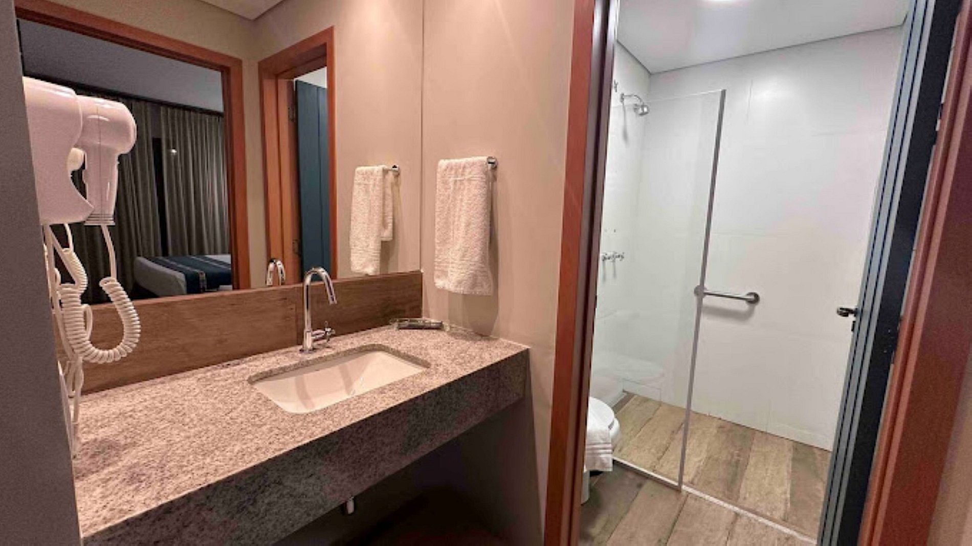 Os quartos possuem ar-condicionado, área de estar, TV de tela smart LED, cofre e banheiro privativo com chuveiro, produtos de banho gratuitos, roupão, toalha de piscina, secador de cabelo, brinde de água mineral, chá e café solúvel. Todos os quartos possuem mesa de trabalho com sinal wifi.