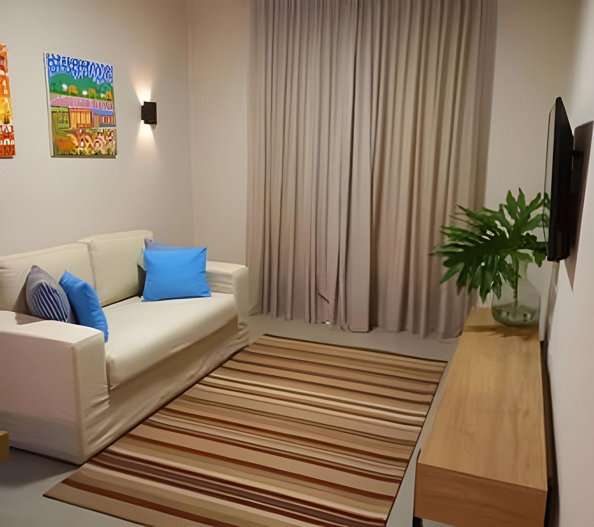 Os quartos possuem ar-condicionado, área de estar, TV de tela smart LED, cofre e banheiro privativo com chuveiro, produtos de banho gratuitos, roupão, toalha de piscina, secador de cabelo, brinde de água mineral, chá e café solúvel. Todos os quartos possuem mesa de trabalho com sinal wifi.